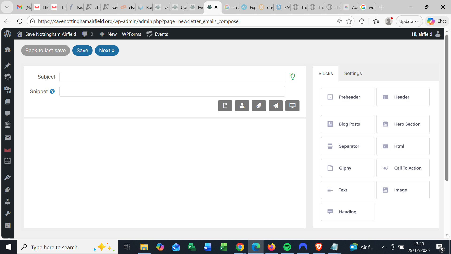Hi Folks. I’m trying out your Newsletter plugin – which looks like it might be the tool for the job – but I want to create a footer with a site ID and unsubscribe options for users. I can see reference on the web to a footer block which sounds like it might be what I’m looking for, but my installation has no footer block, so I’m unable to move forward. Can you suggest what I might be doing wrong? The blocks I do see are: